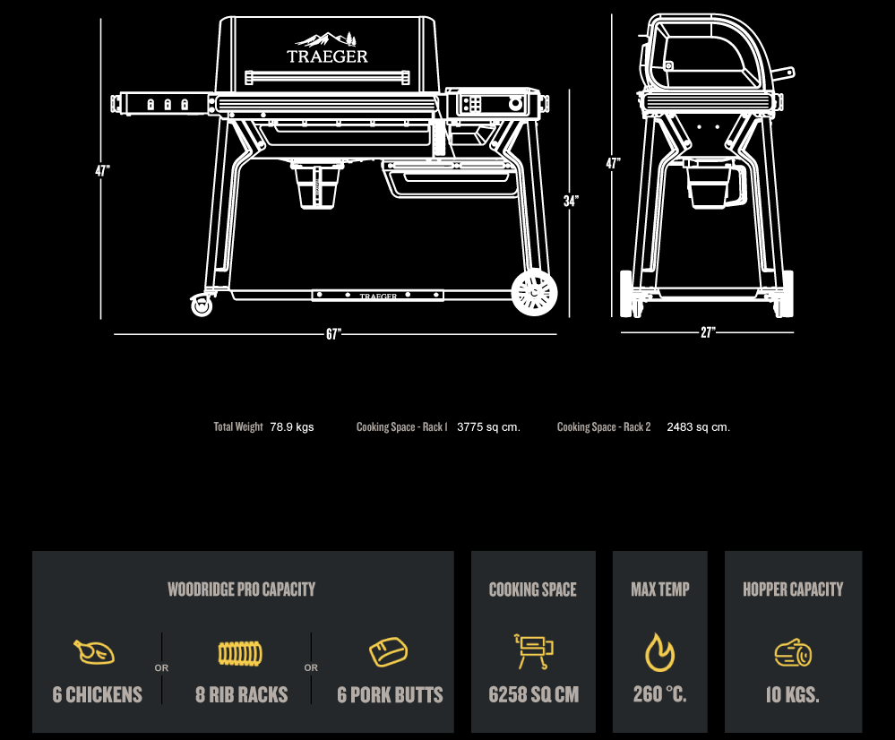 Unlock amazing wood-fired flavour and effortless controls with the Woodridge Pro. Smoke brisket or pulled pork low and slow using Super Smoke™ Mode, or turn up the heat for hot and fast grilling. Set-It & Forget-It® convenience takes care of the cooking, delivering perfect, consistent results every time. Plus, the added side shelf gives you extra space for prepping and plating.