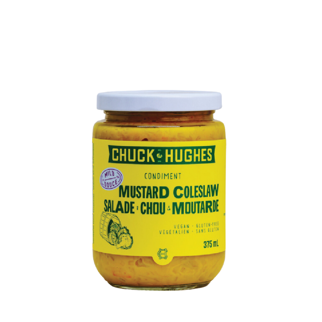 Chuck's Mild Mustard Coleslaw is a game changer for your sandwiches, burgers, and barbecue. A delicious mix of cabbage and mustard mixed in with spices, veggies, tangy vinegar, and earthy turmeric – the ultimate everyday topping you’ll never want to be without!